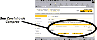 Ao clicar sobre o botão , você coloca o produto escolhido em seu "Carrinho de Compras", que mostra todas as informações sobre sua compra. Nele você obtém todas as informações sobre o(s) produto(s) adquiridos.